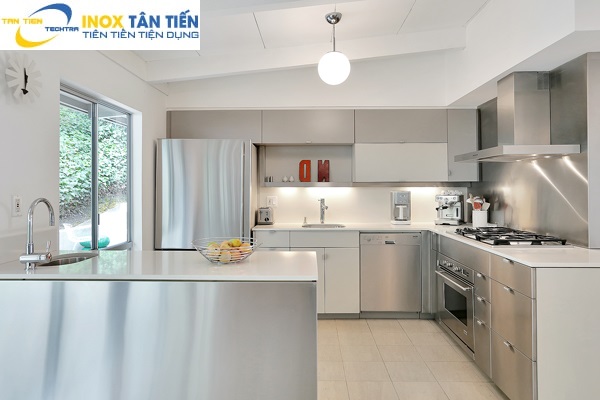 Tủ bếp inox 304 với tính thẩm mỹ bóng sáng nổi bật