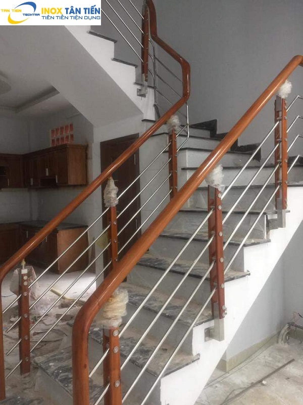 – Cầu thang inox dây đàn tay vịn gỗ chủ yếu dùng cho cầu thang, lan can trong nhà.