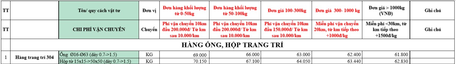 2. Bảng giá ống inox trang trí của Công ty Inox Tân Tiến tốt nhất miền Bắc