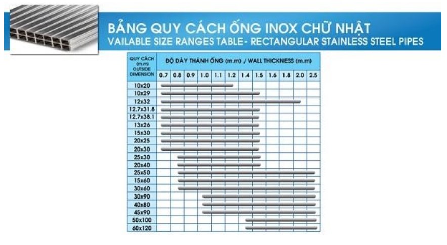 Quy cách ống inox trang trí chữ nhật