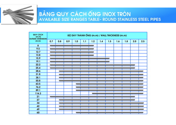 Theo bộ tài liệu quy chuẩn của ngành vật liệu inox, thì quy cách ống inox trang trí được thể hiện ở những thông số sau: